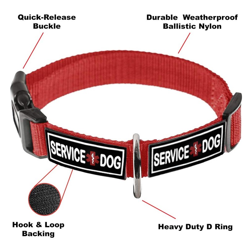 Dogline Omega Nylon Collar for Dogs with 2 Removable Service Dog 3D Rubber Pa...