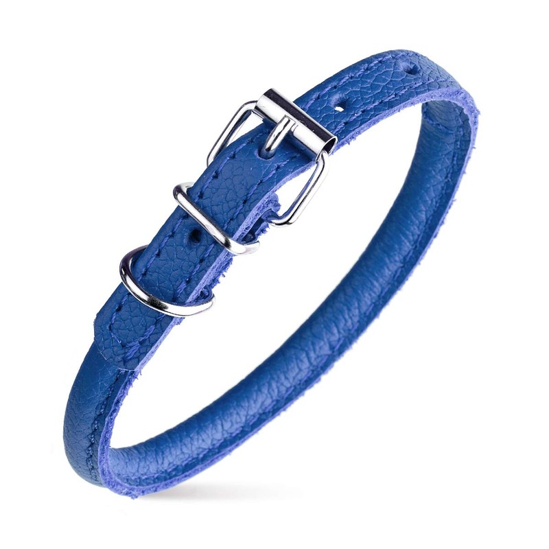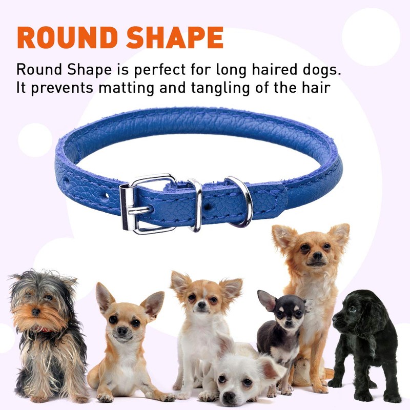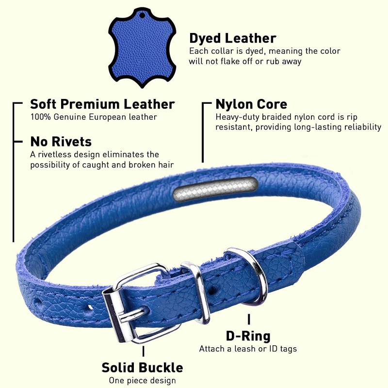 Dogline Rolled Leather Dog Collar - for Small, Medium and Large Breeds - Soft and Padded Round Luxury Design 1/4 by 8-10" Round Leather Collar, XX-Small, Royal Blue