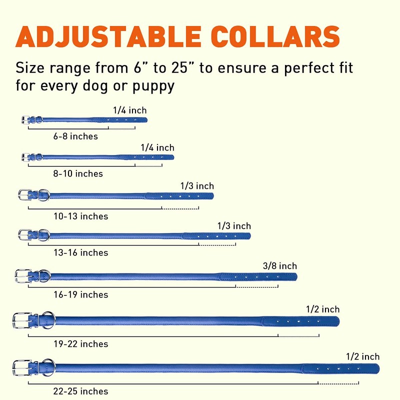 - All Size Dogs. The Dogline soft dog collar comes in seven different sizes. Each collar features a nylon core, encased in an exterior padded leather. Make sure to measure your dog before purchase.