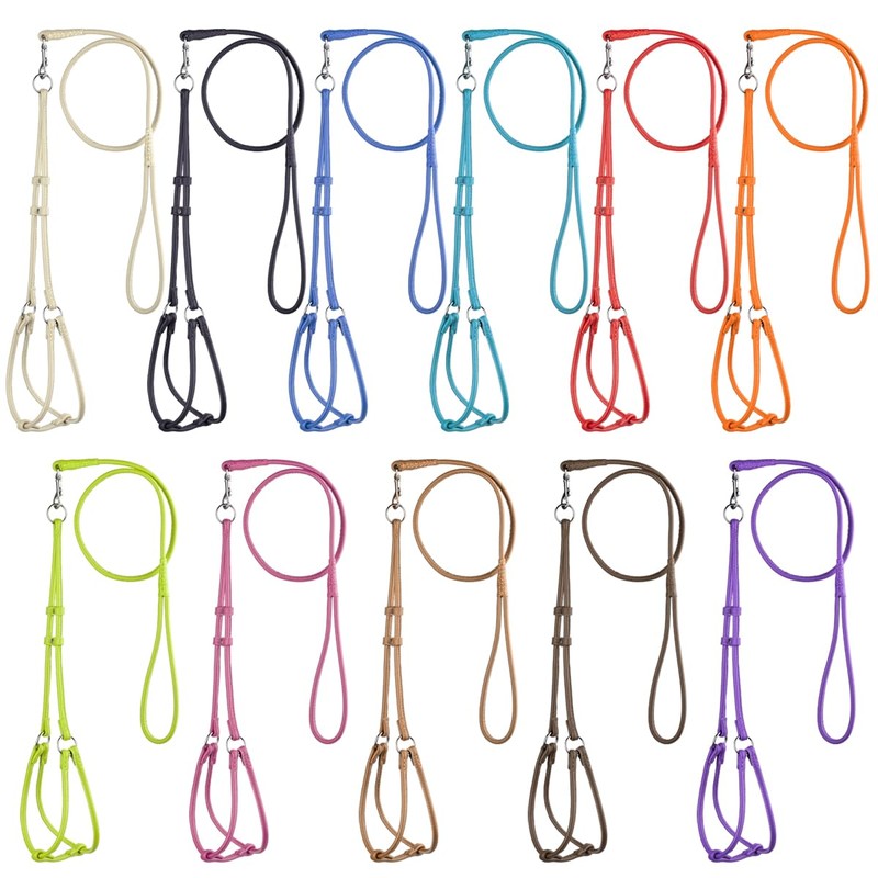 - Genuine Leather. These fine leather harness & leash combinations bring together simplicity and elegance thanks to their elaborate workmanship.