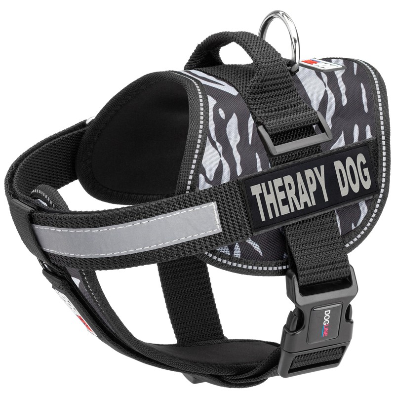 Dogline Unimax Dog Harness Vest with Therapy Dog Patches Reflective No-Pull, Adjustable Straps, Breathable Neoprene for Medical, Service, Identification and Training Dogs Girth 28 to 38" Zebra
