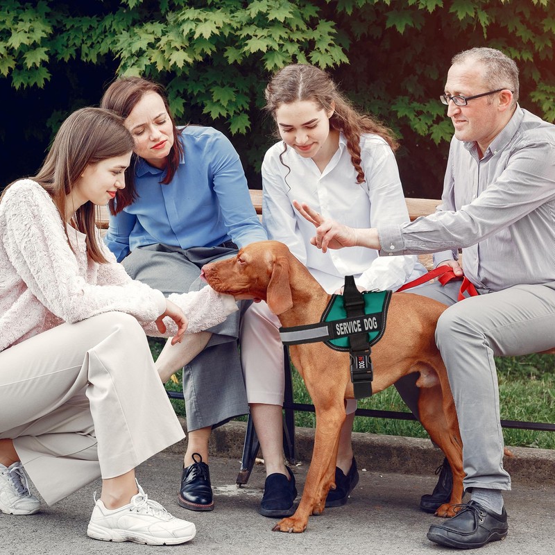 - Removable Patches on this vest dog harness have the largest possible letters to be visible from a distance. Loop backing for interchangeable Service Dog patches included on both sides of the vest.