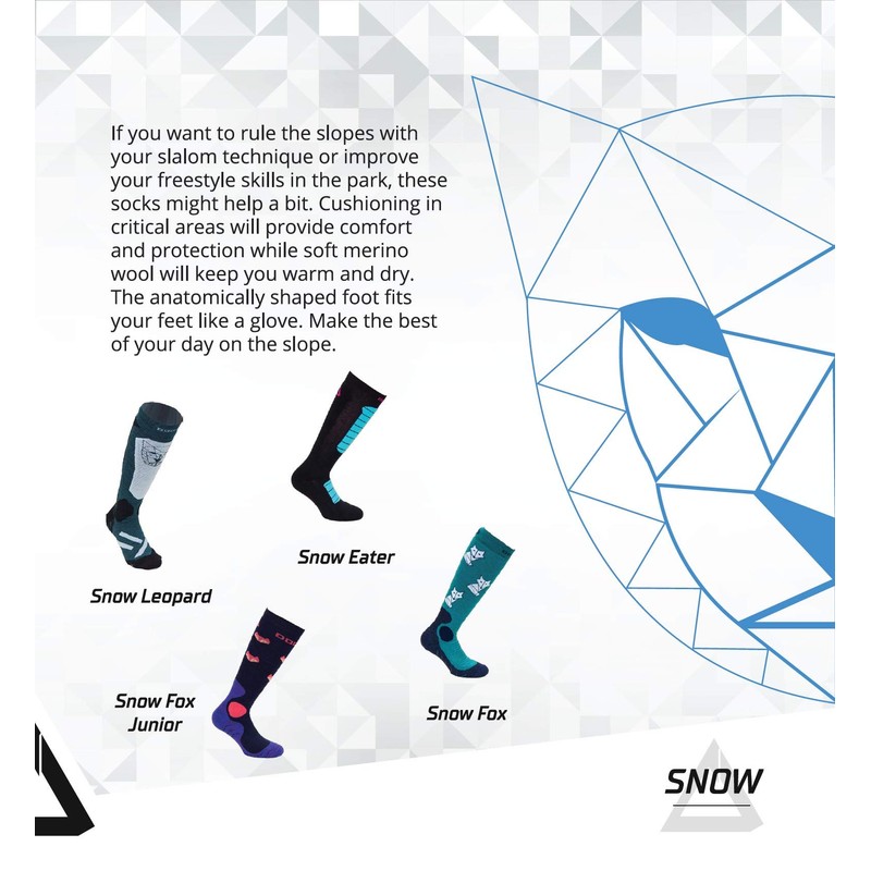 DOGMA Snow Leopard - Snowboard Socks Made of Merino Wool, Ski Socks with Light Compression, Performance Merino Socks for Winter Sports, Retro Blue
