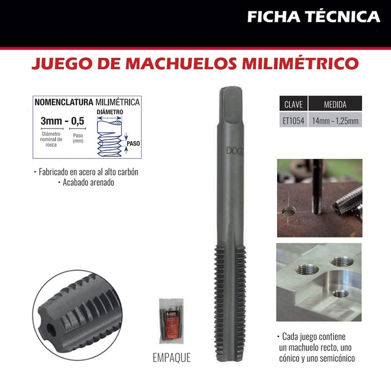 Dogo Tuls ET1054 Juego 3 Machuelos Aac, 14Mm - 1.25