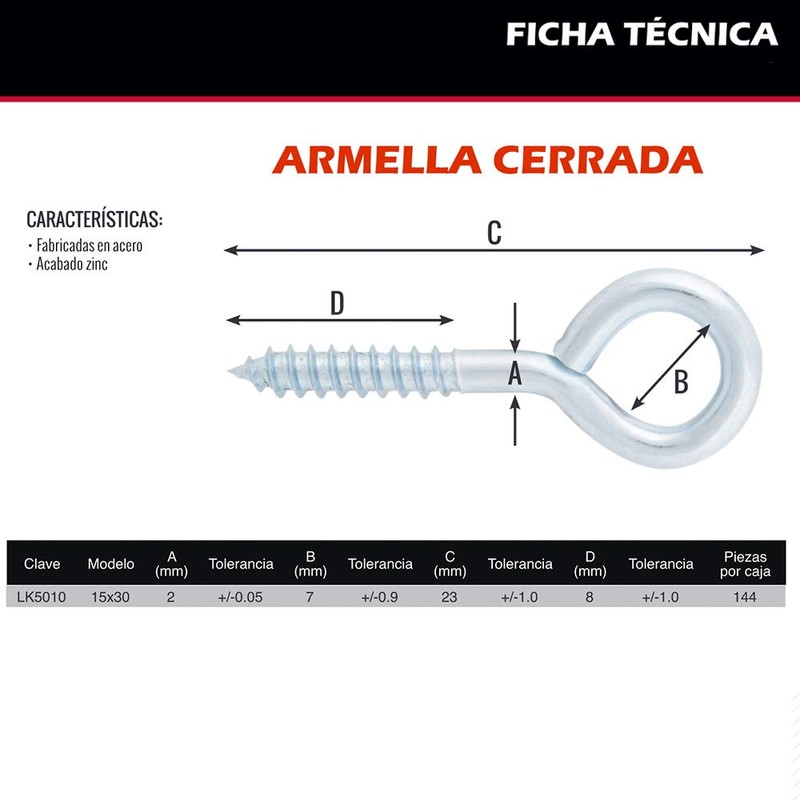 DOGOTULS LK5010 Armella Cerrada Zincado, 15 x 30, 144 Piezas