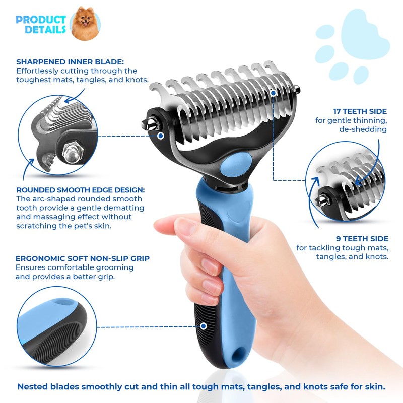 -Double Sided: 9+17 Teeth (Dematting + Deshedding)