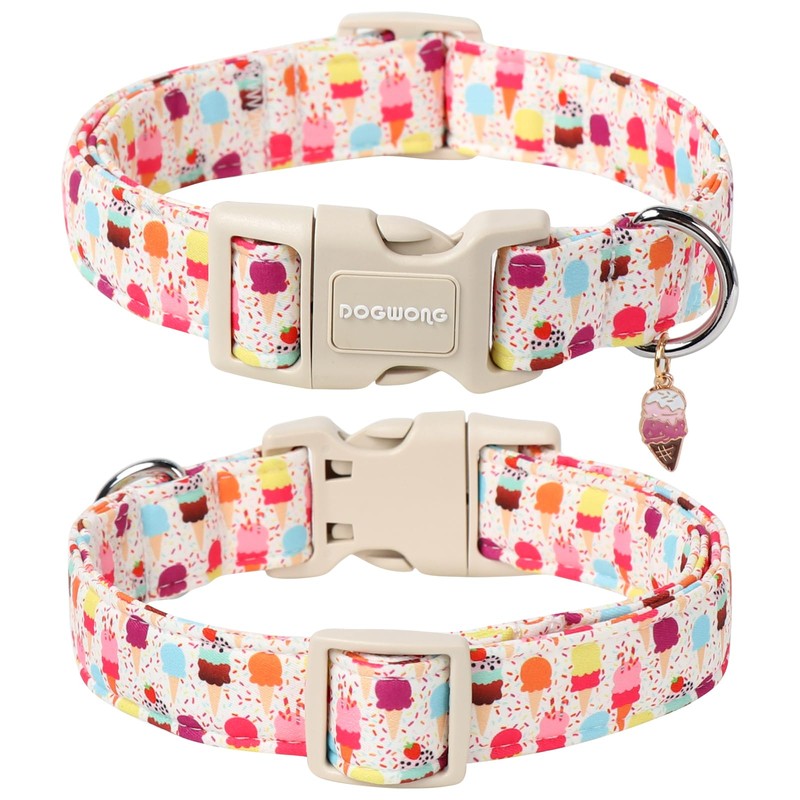 DOGWONG Summer Dog Collar, Popcile Dog Collar Durable Ice Cream Pet Dog Collars Cute Summer Beach Puppy Necklace for Small Medium Large Dogs