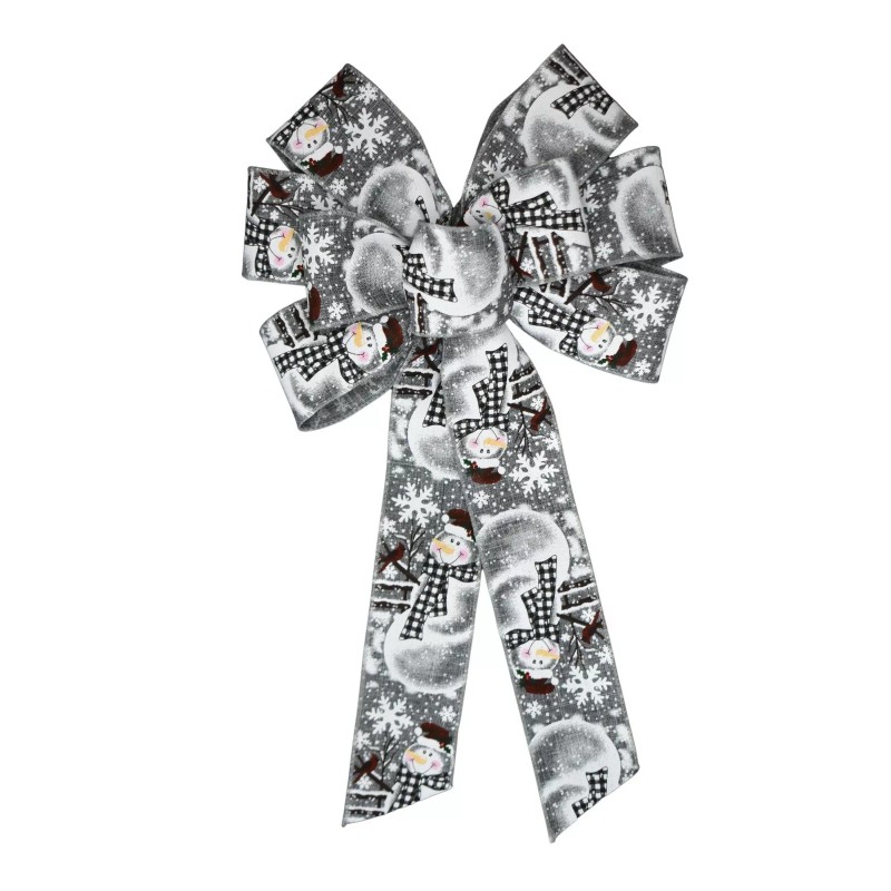 Dogwood Farm Market 10" HandMade Black & White Snowman Christmas Wired Wreath Bow Tree Holiday Truck