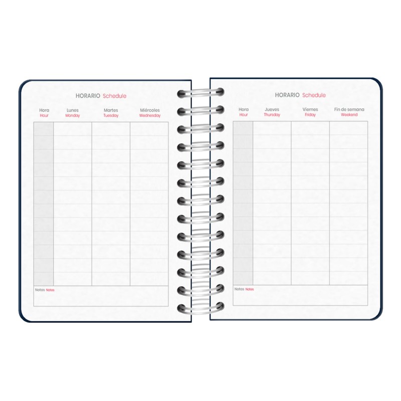 • [MUST-HAVE SECTIONS]: 302 pages diary with different sections such as schedule, calendars, planning or ample spaces for notes. Includes bilingual header in Spanish and English.