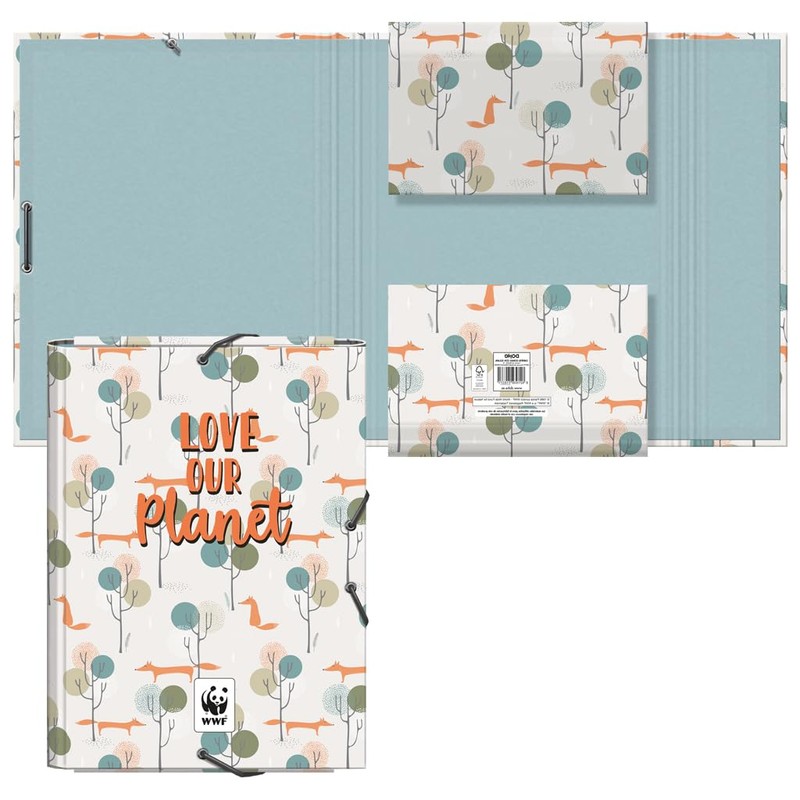 Dohe - School Folder Flaps and Rubbers - Folio Size 26.5x35cm, Capacity 100 Sheets, Hard Cardboard Cover, Back to School Portfolio, School Supplies, FSC Mix AEN-COC-000243 - WWF Love Our Planet