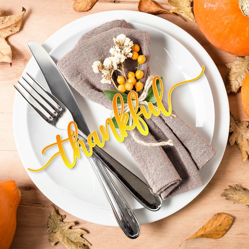 Dohia Thanksgiving plate Cutout Sign Rustic Acrylic Thankful Cards Sign Fall Dining Table Plate Ornament Farmhouse Home Table Setting Decor ST4-CPGEBJ (Gold)