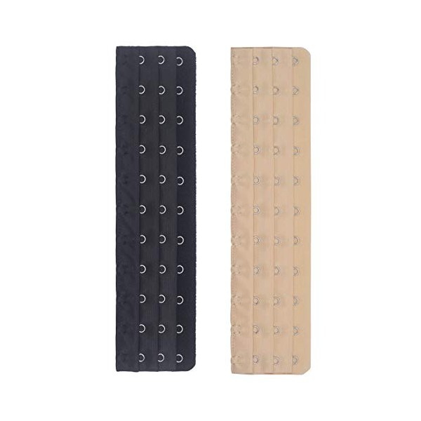 - Pack in 2 color sets 11 Hooks Bra Extenders (One each Black & Dark Beige).
