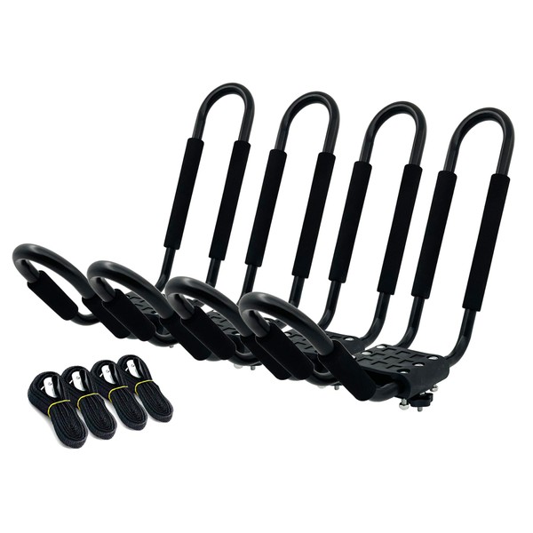 DOHUSPLE DOHUSPLE Kayak Roof Rack for 2 Kayaks Carrier, Kayak J Bar Hooks Roof Mount Racks for Universal Cars, SUV, Truck, Set of 4 Racks