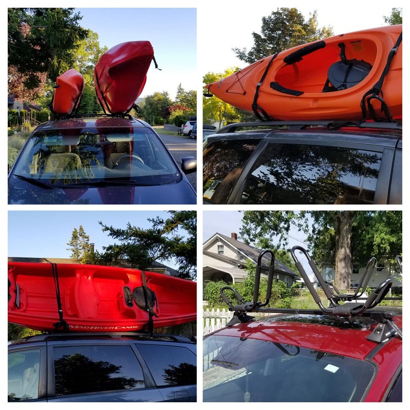 • Kayak Roof Racks: 2 Pairs kayak rack carrier for transporting 2 kayaks on your trip road, designed to mount on virtually all cross bars and load bars on the market (except round bar)