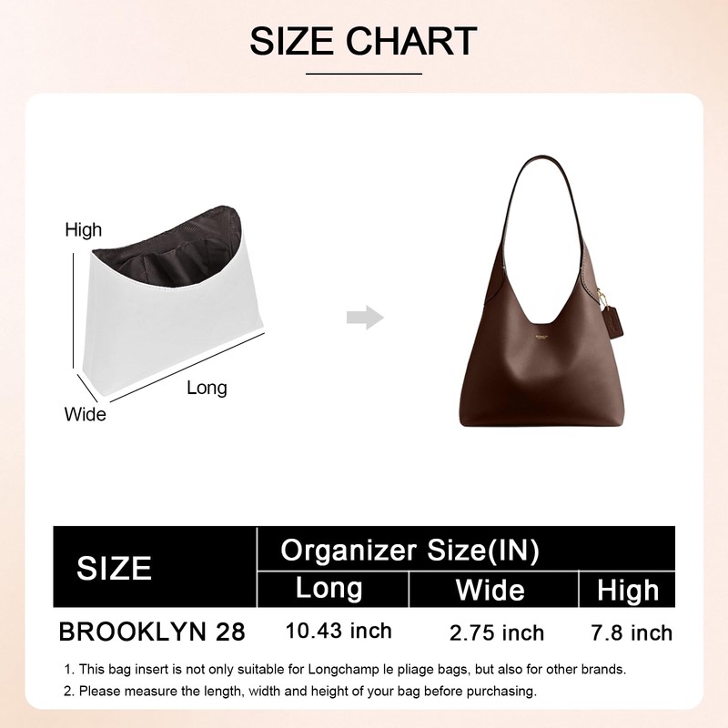 • Tailored for Brooklyn Shoulder Bag 28:Dupont Paper Organizer for Brooklyn 28 Bag Size :10.43(L)x2.75(W)x7.8(H) inches. Please measure the size of your bag before purchasing.