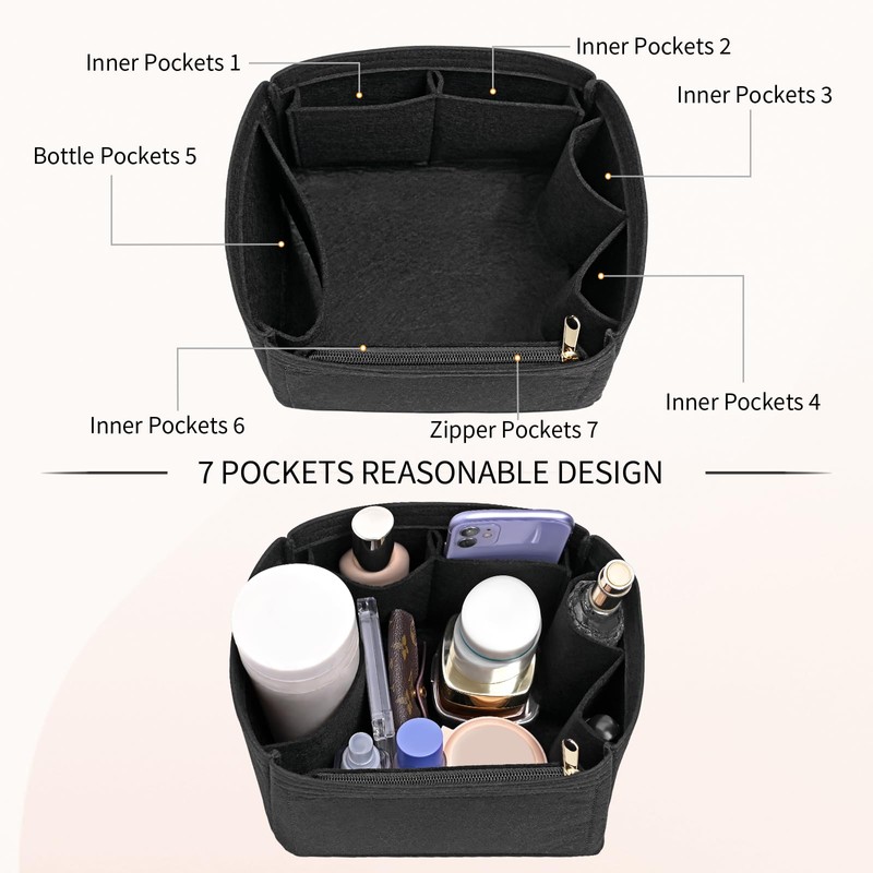 - New Upgrade Pocket: The purse organezer insert with several pockets(6 pockets, 1 Cup Pocket), keep your items organized and keep the bag clean. Suitable for many brands and various bags! It is a fashionable item for traveling in summer, and it is a good choice for daily travel, party, and office!