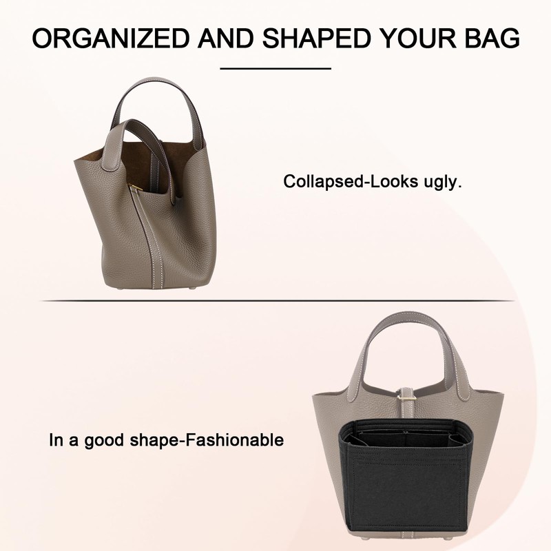 - Lightweight Material:Picotin Bag Organizer insert Made of high quality felt, comfortable to the touch and firm support; the zipper of the organizer bag is made of high quality metal, durable, stylish and smooth