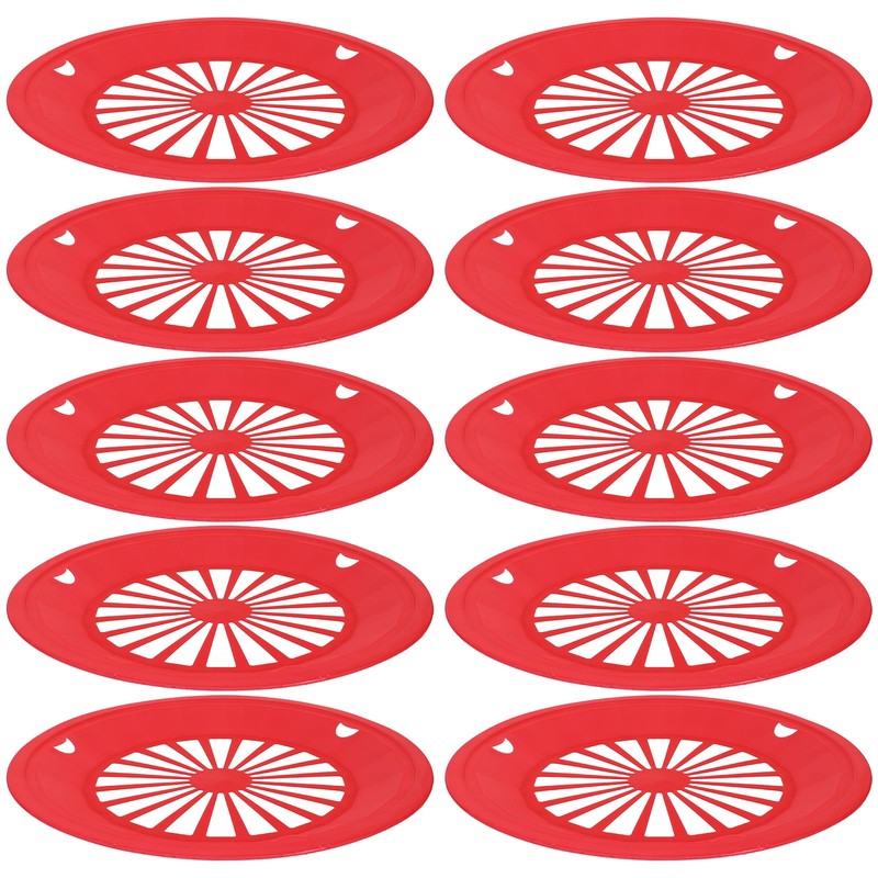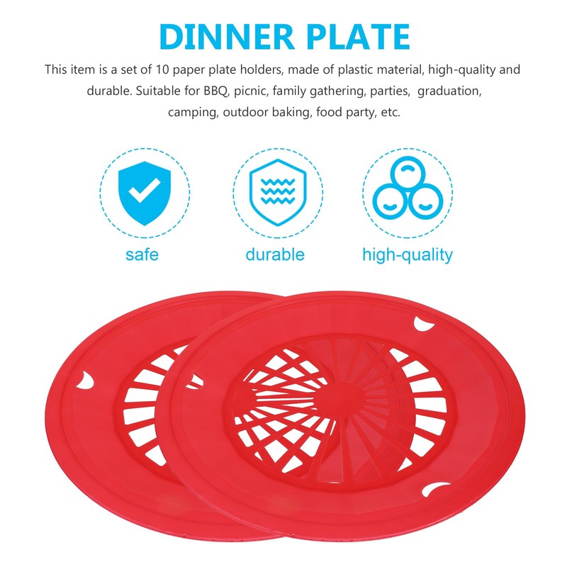 DOITOOL 10Pcs Reusable Plastic Paper Plate Holder for Party BBQ and Picnic Round Paper Plate Trays Barbecue Plate Support Plastic Dinnerware (Red)