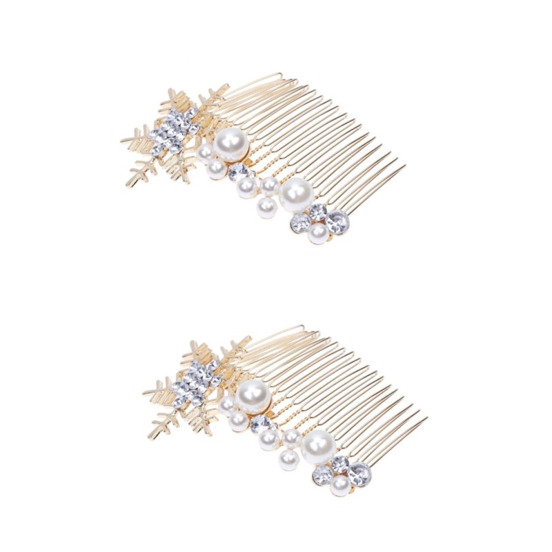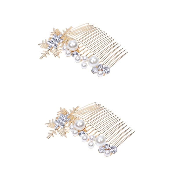 DOITOOL 2 Pcs Alloy Simulated Pearl Snowflake Hair Comb Styling Tool for Women Fashion Accessory for Wedding Party Prom