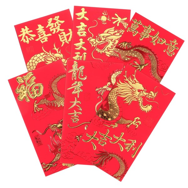 DOITOOL 6pcs Chinese Year Red Envelopes Dragon Year Delicate Pattern Lucky Money Packets for Spring Festival and Blessings