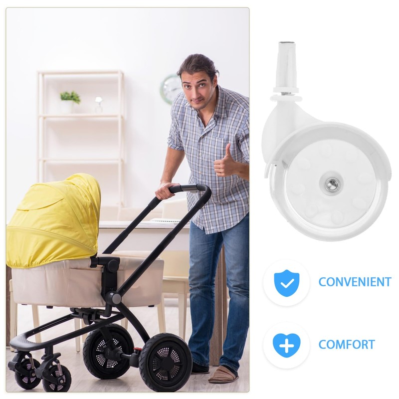 This Baby Universal Replacement Wheels set is designed to fit most walkers and strollers, providing a reliable and practical solution for replacing worn-out or damaged wheels. Made from excellent plastic rubber, these wheels offer smooth movement and are easy to install. The white color ensures a clean and matching look with most baby gear.