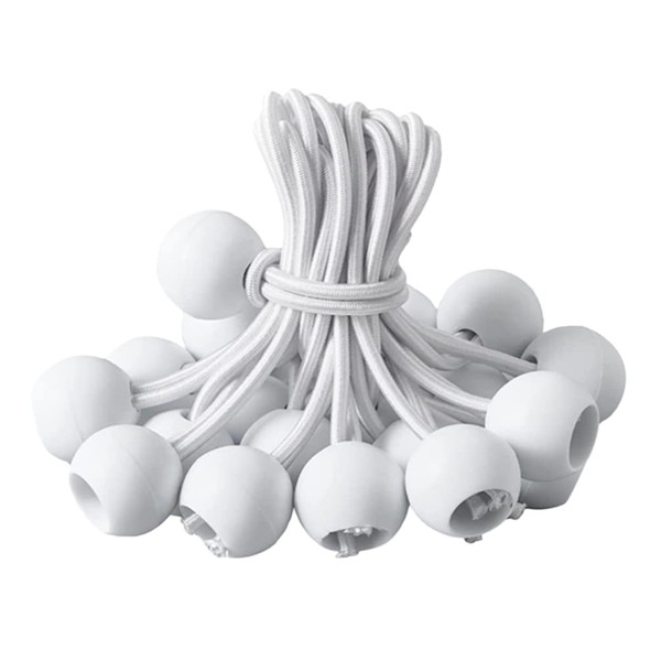 DOITOOL Ball Bungee Cords 10 Inch, 50Pack White Tarp Ball Bungee Ties Heavy Duty Bungee Cord Balls Weather Resistant Canopy Tarp Tie Down for Camping Tarp Cargo Tent