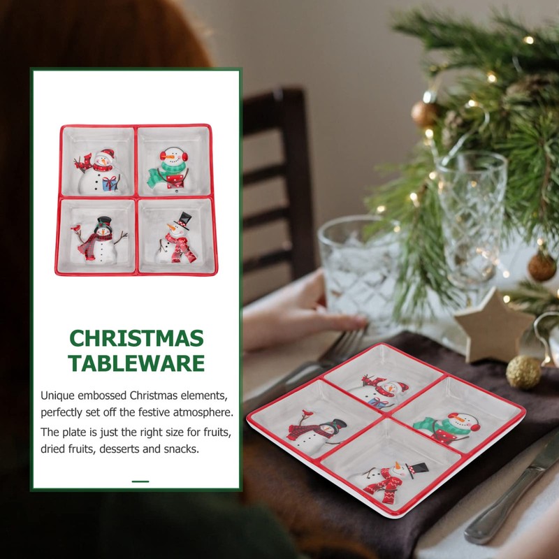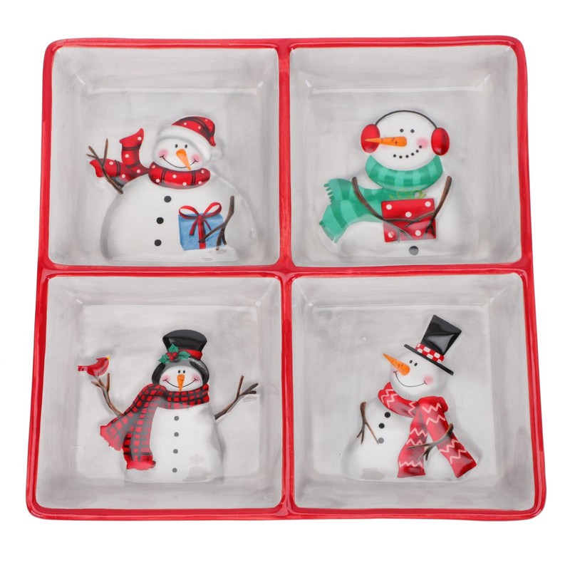- Holiday Ceramic 4-Section Server---Serve your Christmas culinary creations in style with this 4-section multipurpose serving plate that can be used to serve holiday cookies, candy, snacks, appetizers, condiments, nuts, dips and so much more