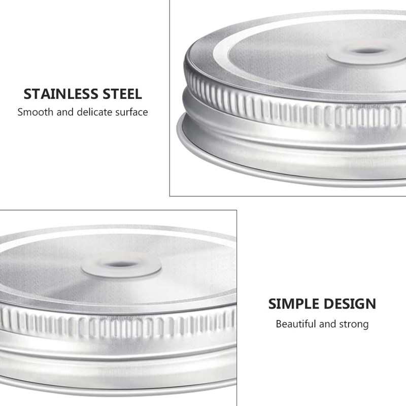 2 pieces mason jar straw lid stainless steel lid canning jar lid with straw holes.