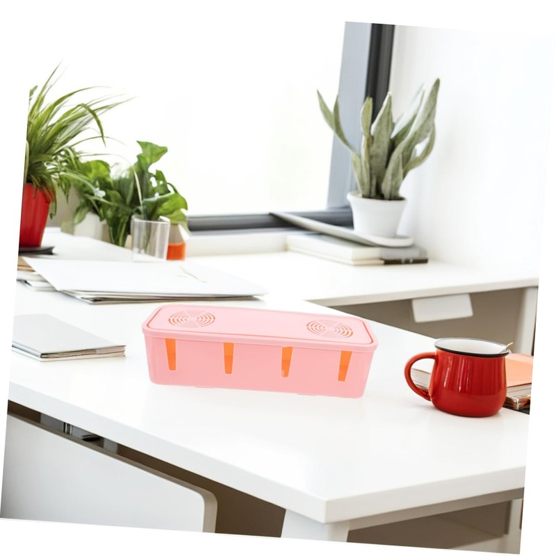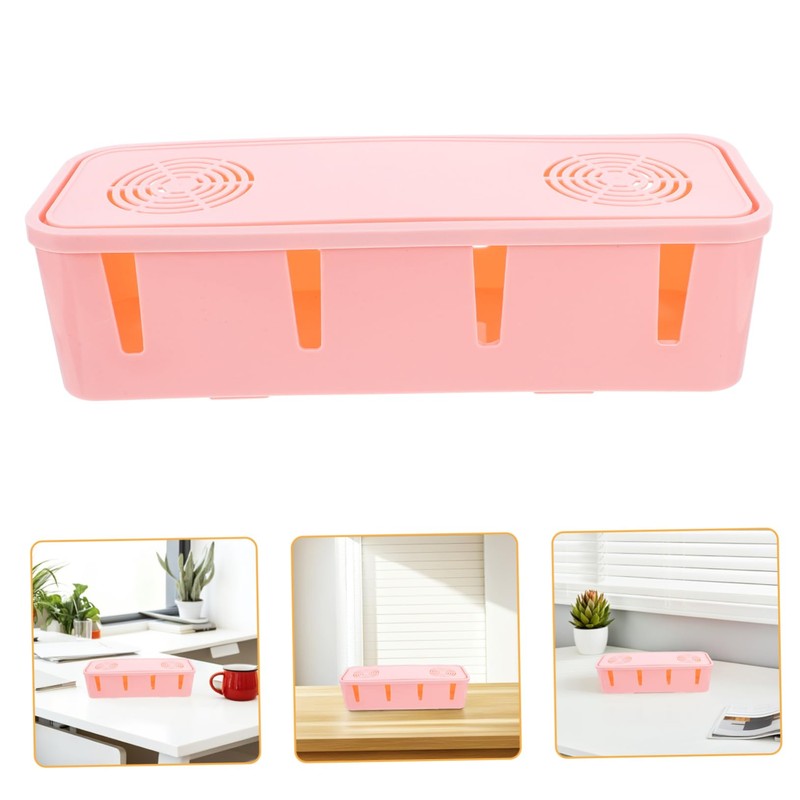 DOITOOL Socket Storage Box Anti-dust Power Strip Organizer Lightweight Cable Management for Home Office Pink