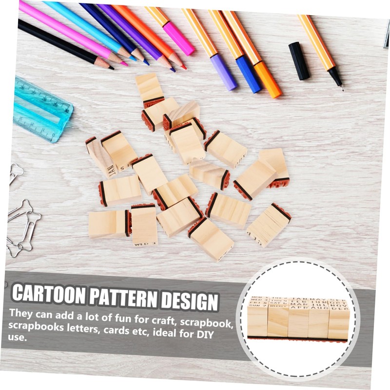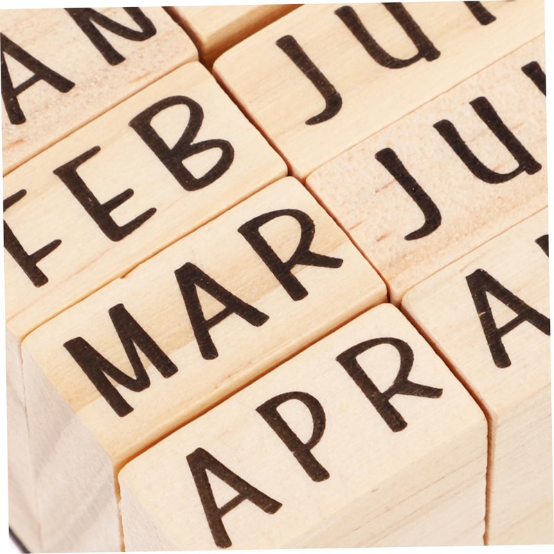 DOITOOL Wooden Month Stamp Set for Scrapbooking and Journaling DIY Delicate Stationery Stamps Kit with Alphabet and Number Designs Creative Craft Supplies for DIY Projects