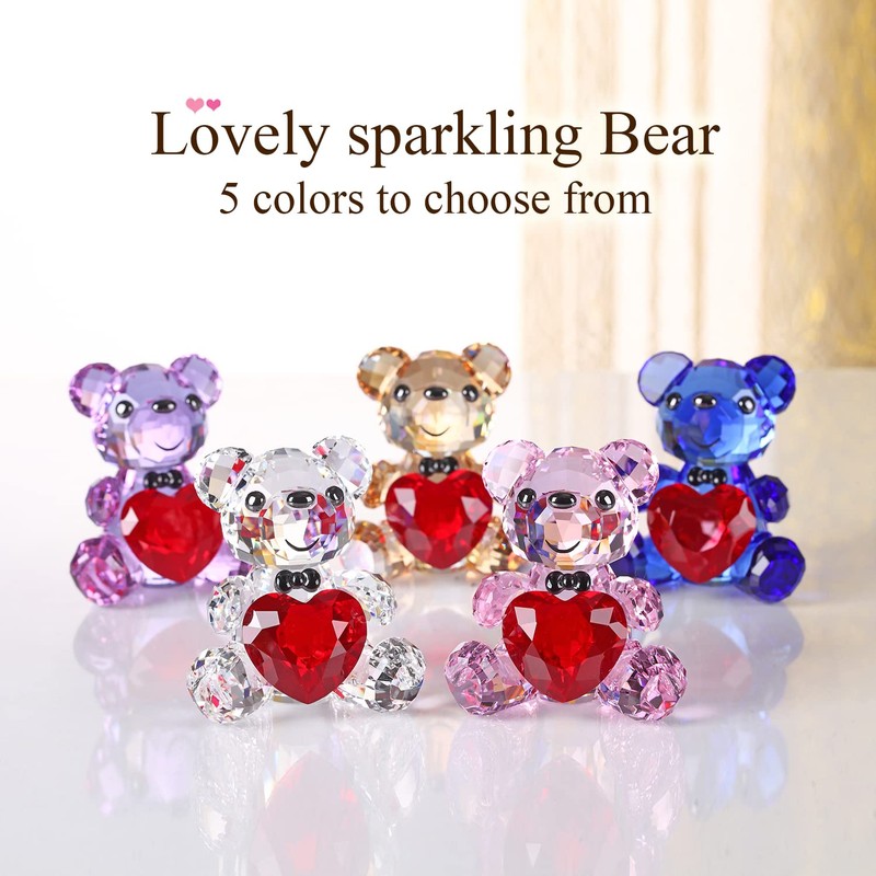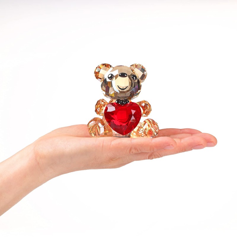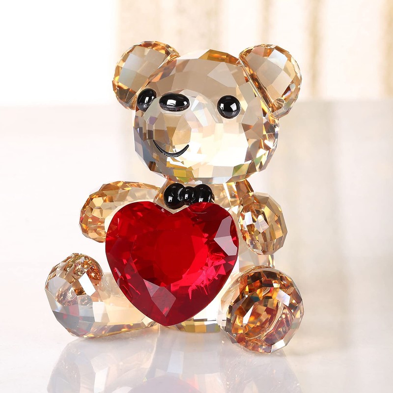DOJOZ Crystal Teddy Bear Valentines Day Sweet Gifts Figurine Red Heart Lovely Animal Collectible Ornament Birthday (Gold)