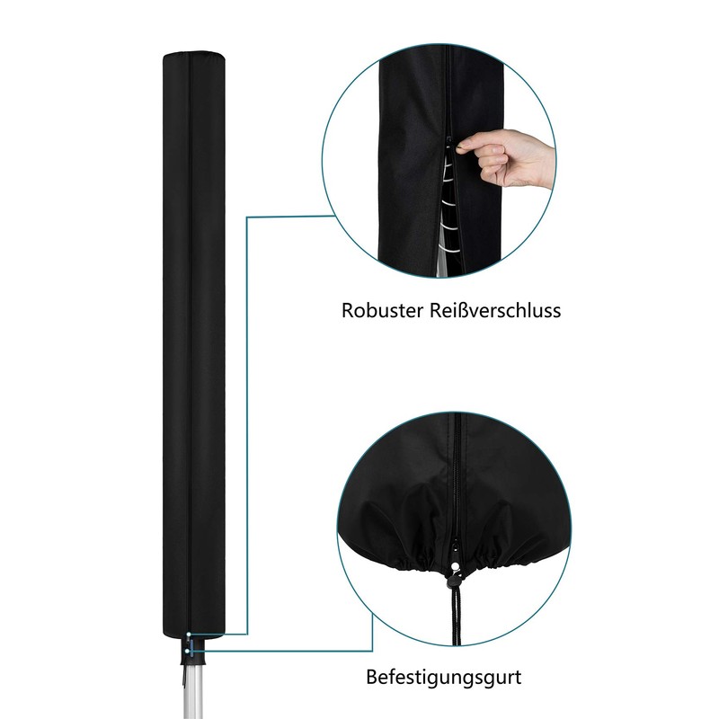 Dokon Rotary Airer Cover with Clothes Peg Bag, Waterproof, Windproof, UV-Resistant 420D Oxford Fabric, Protective Cover for Rotary Airer with Zip and Drawstring (165 x 18 x 18 cm) - Black