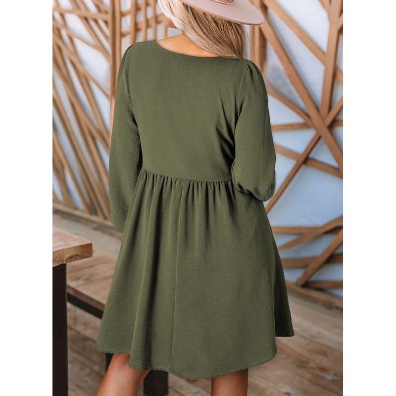 - Classic Features: This long sleeve dress showcases classic crewneck and decorative button design, complemented by smocked detail and empire waist. The flowy A-line hem of swing mini dress add a chic and elegant touch, making it a must-have for wardrobe.