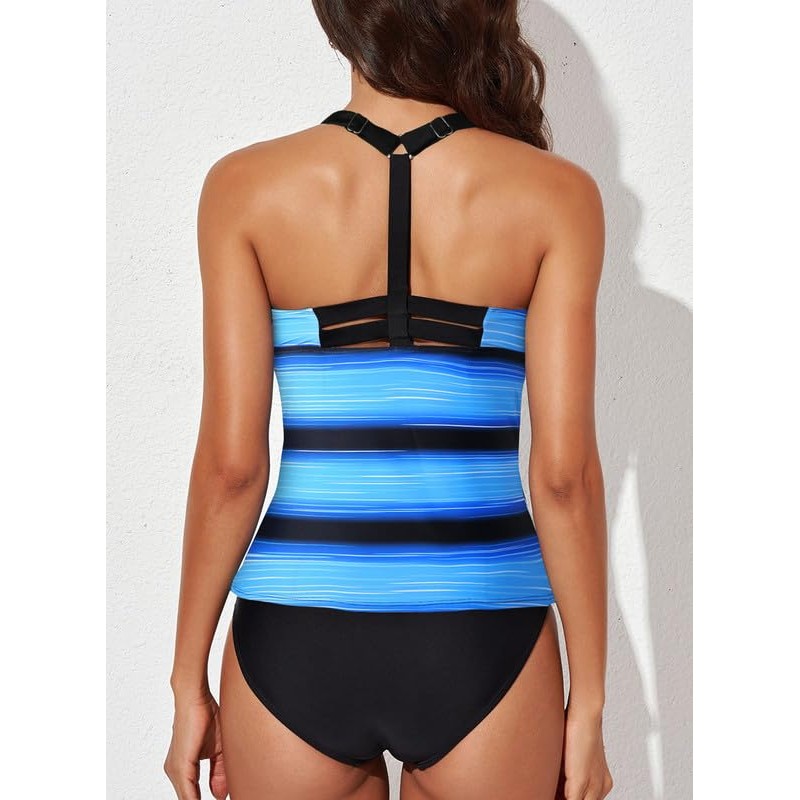 Dokotoo Tankini de verano para mujer 2023 con espalda cruzada con estampado de rayas, sin parte inferior (S-XXXL), 3 azul cielo, XXL