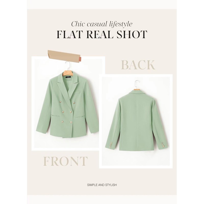 - Feature: Double breasted,long sleeve with buttons,front side pockets,notched lapels collar,solid color,slim fit,lightweight,open front casual work office business blazers for women.