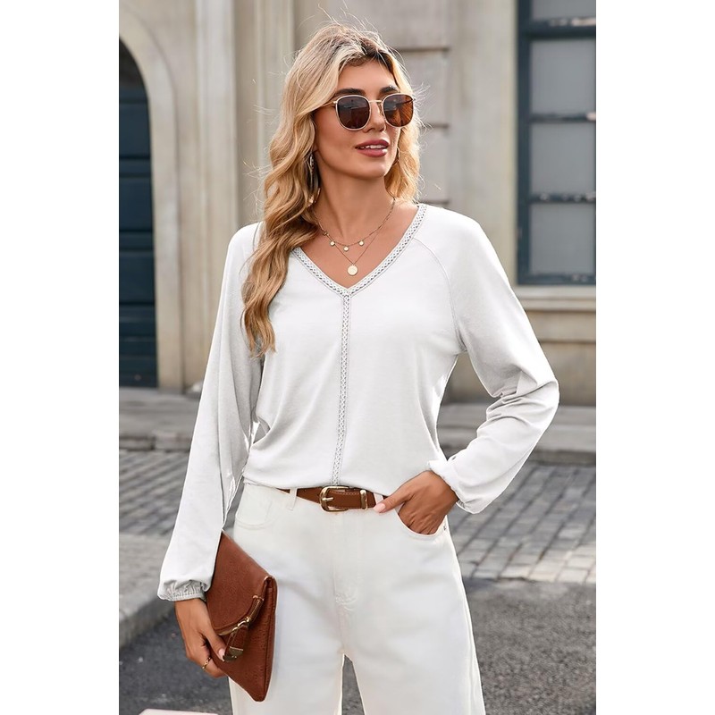 - Dokotoo womens tops not only features a flattering v-neck and long sleeves, but also adds a touch of style with its intricate braid trim.Lightweight and versatile, it's the ultimate combination of comfort and fashion!