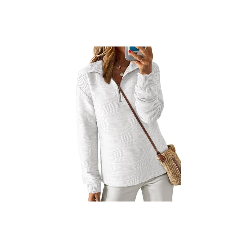 Dokotoo Womens Half Zip Pullover Sweatshirts for Women 2025 Fashion Trendy Textured Tops Jackets Quarter Zip Cropped Loose Sweaters Fall Clothes Outfits Coat Top Shirts White Small