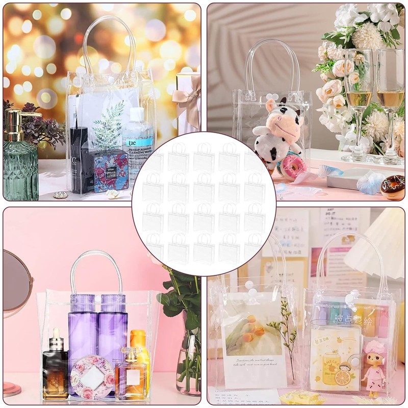 Dokpav 30Pzs Bolsas de Regalo de PVC Transparente con Asas, Bolsas de Plástico Reutilizable, Bolsas de Compras, Bolsas de Dulces para Bodas, Fiestas, Cumpleaños, Escolares, 20 * 20 * 8Cm