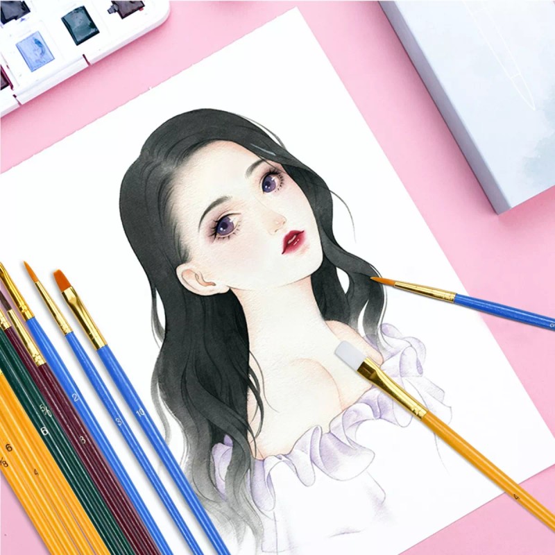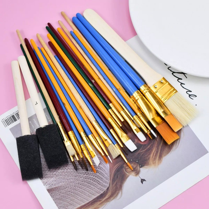 Material premium: los cepillos de nailon, cerdas, esponja y pelo de camello están disponibles en una variedad de formas y tamaños, que incluyen formas redondas, planas, de abanico, angulares y angulares, y el tamaño está marcado en el mango de madera para que pueda encontrarlo fácilmente.