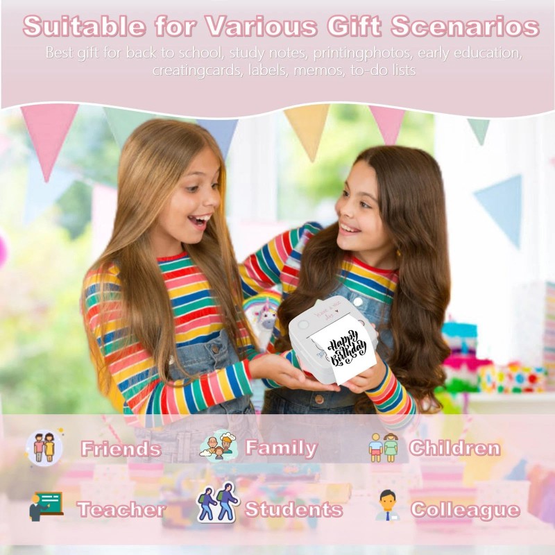 [Thermarote Printer with Cute Design]→Fun little printer with a pretty cute design, you will love it as soon as you receive it. It's a nice gift for your youngers, they can use it in craft class orcan printouts. With the latest powerful APP function, you are able to use it printing to decorate your DIY scrapbook, or you can utilize the latest AI cartoonish character drawing function to design unique stickers for yourself