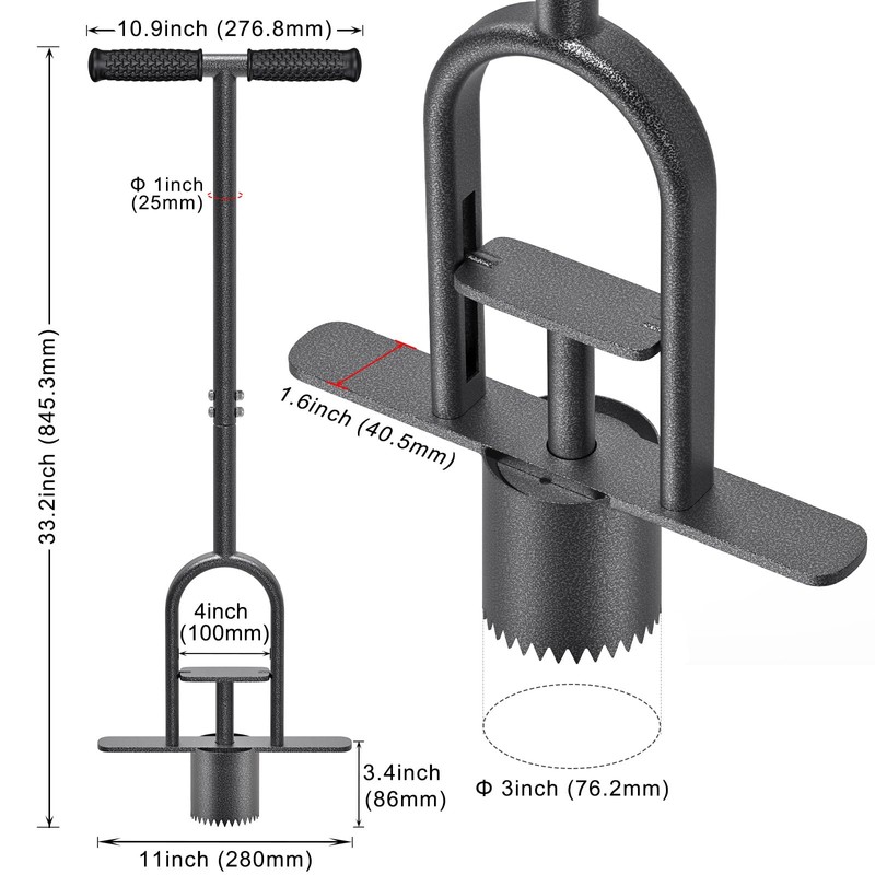 - Turf Plugger & Transplanting Tool: Whether you’re patching bare spots, renovating problem areas, or establishing a new garden, this turf plugger and transplanting tool is designed to tackle the job with unmatched efficiency. Effortlessly dig and transplant plugs for any turf type—Bermuda grass, centipede grass, and more.