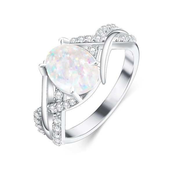 DOLIOX White Opal Rings for Women Oval 925 Sterling Silver Engagement Ring for Wedding Promise Oval October Birthstones Jewelry for Wife Size 9