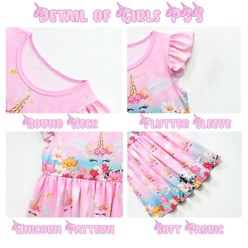 - 🦄Ideal Unicorn Clothes for Girls: This adorable dress set feature vibrant 3D sublimation-printed unicorn designs that maintain their bright colors and sharp details even after repeated washing.