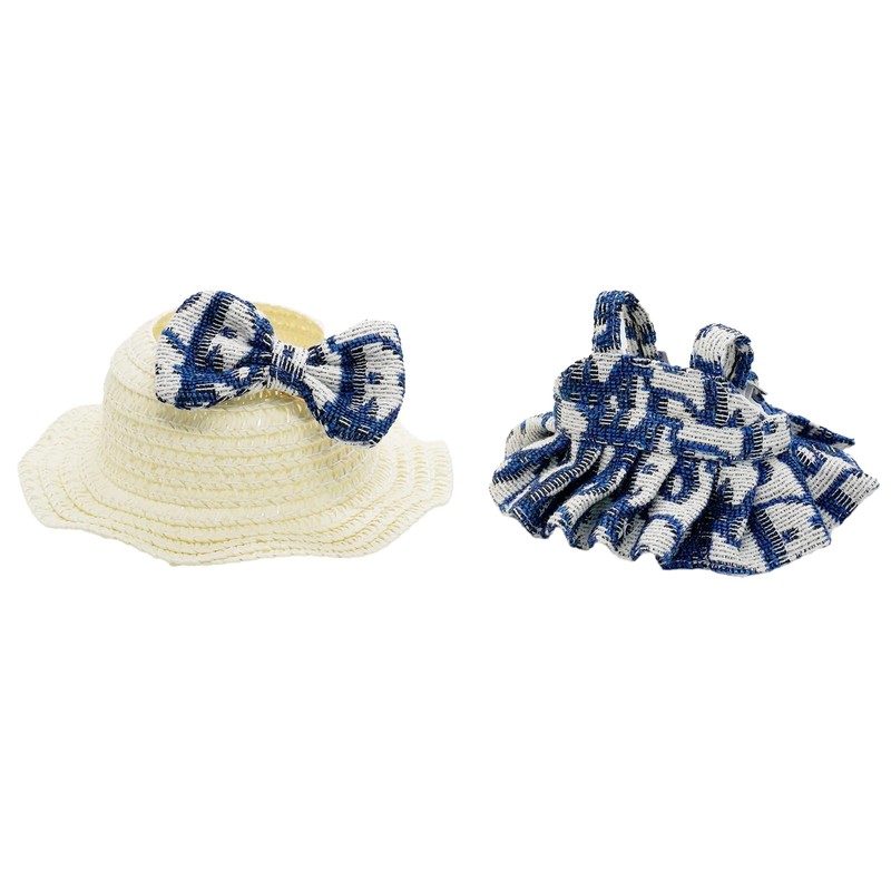 Doll Clothes for 17cm Dolls, Premium Handmade Fashion Clothes 3 Piece Set Including a Weaving Hat, Clothes and Bow with High-End Dolls Accessories for Play & Display - Pure Blue (No Doll No Logo)
