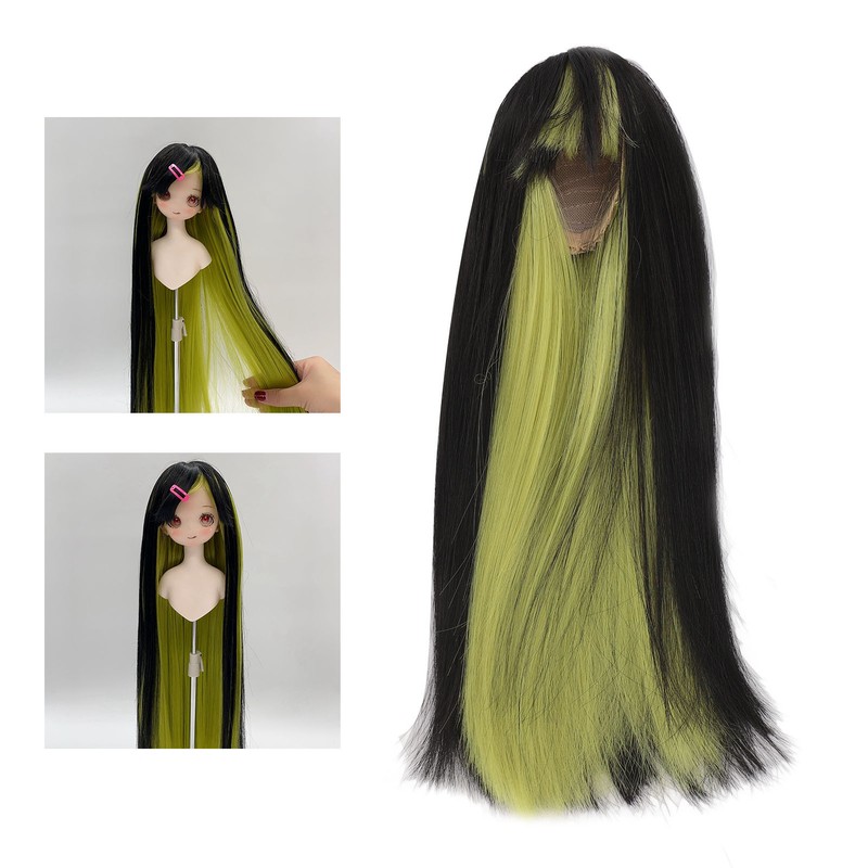 Doll Long Straight Wigs Dual Color Simulation Soft High Temperature Fiber 1/4 Ball Joint Doll Wigs with Bangs Black Green