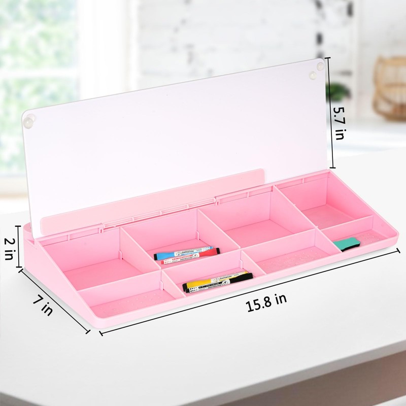 - Desk Whiteboard with Storage: inner storage compartments of the desk organizer help to keep your desk neat and maximize your work area. Store your accessories like pens, markers, pencils, paper clips, keys, and notes, etc. Removable dividers allow you to customize the grid size to your needs.