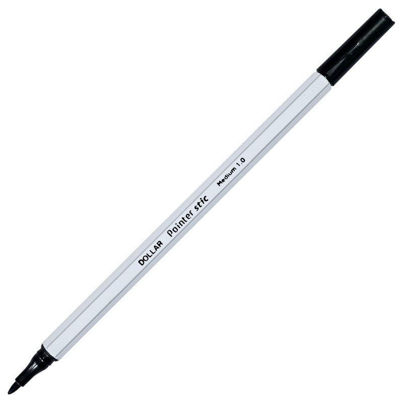 DOLLAR PS10 Felt Tip Pens, Medium Point (1.0 mm), BLACK, Pack of 10, Writing Pens, For Drawing Sketching Colouring Marking Writing, School Office Home Use