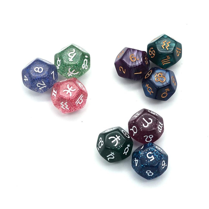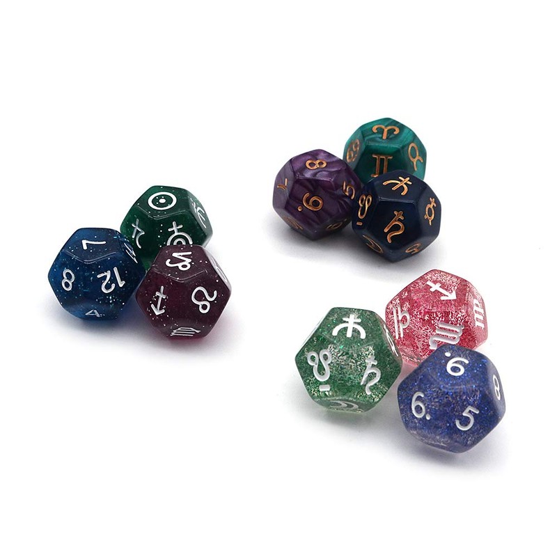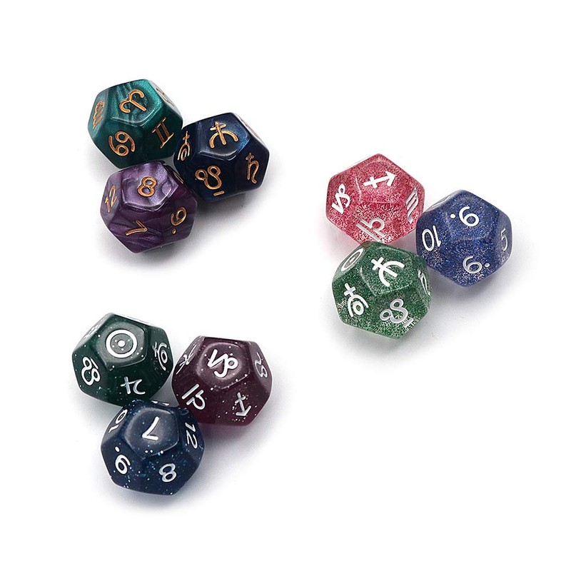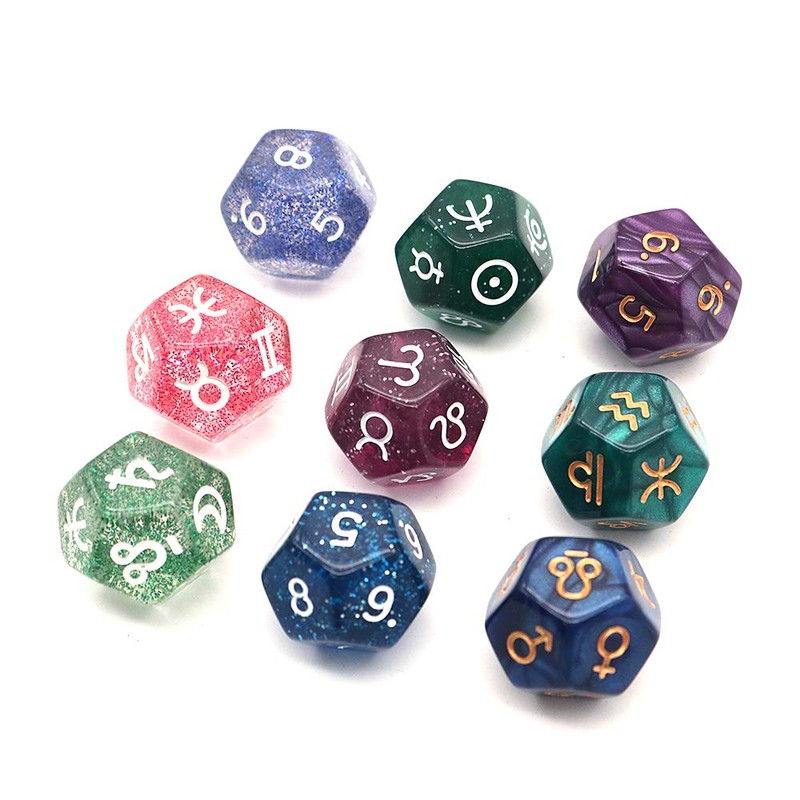 DollaTek 3 Sets of 9 Pieces Multicoloured 12-Sided Resin Dice Astrology Tarot Constellation Divination