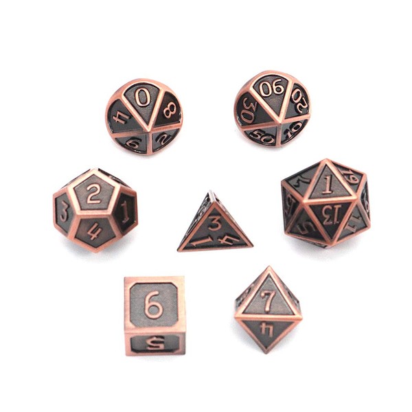 DollaTek 7pcs DND Game Polyhedral D & D Dice Set Made of Solid Metal with Storage Bag and Zinc Alloy with Enamel for Role Play Dungeons and Dragons (Plated Copper Red)