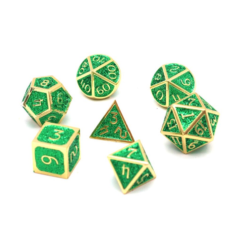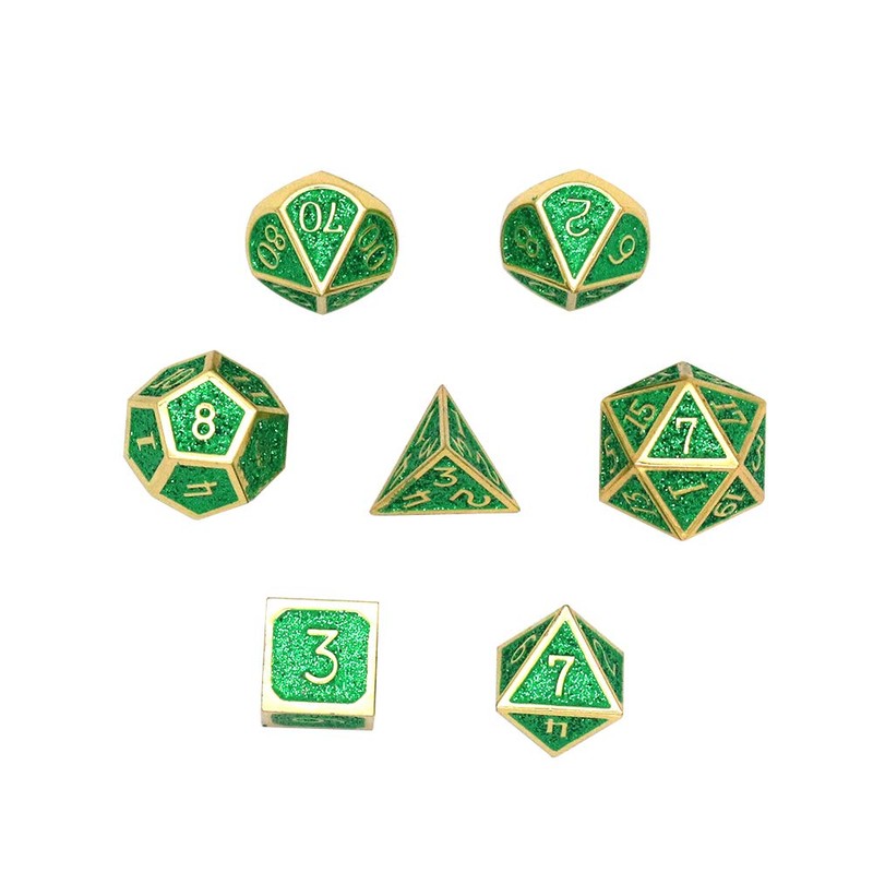 DollaTek 7pcs Polyhedral Metal Dice Set with Black Storage Bag for Role Play Dungeons and Dragons D & D Math Lessons (Shiny Deep Green)